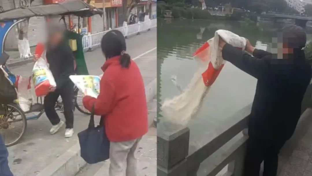 据报道,最近,有网友发视频称,浙江温州瑞安两位老人在河边“放生”大米,车上还有好几兜成袋大米。对此,瑞安市水利局工作人员回应称:“倒大米是浪费粮食,大米也不是污染物,会把这个情况反馈一下。”